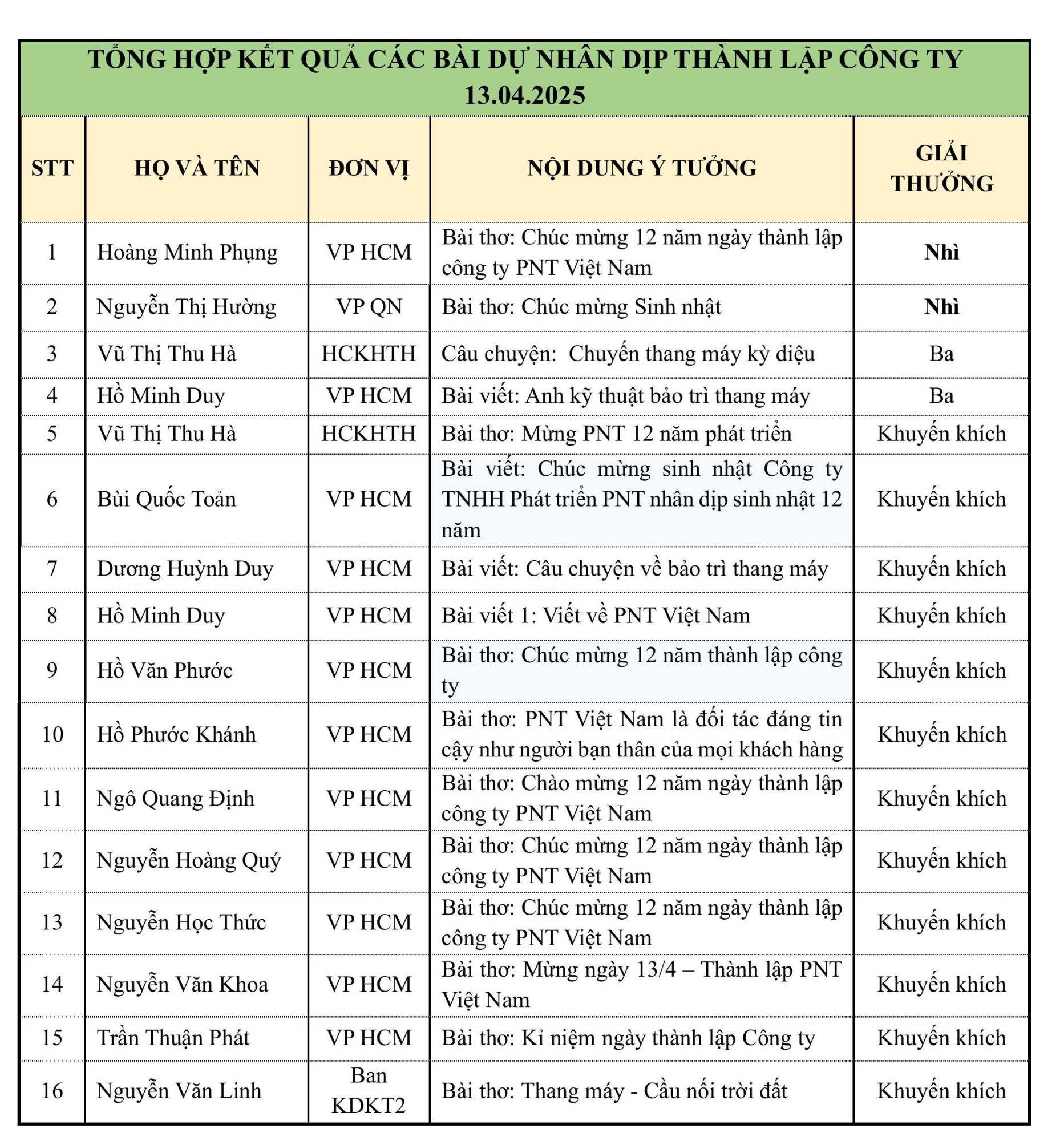 Nằm trong chuỗi hoạt động chào mừng kỷ niệm 12 năm thành lập Công ty TNHH Phát triển PNT Việt Nam (13/4/2013 - 13/4/2025), phong trào sáng tác nội bộ đã khép lại với nhiều tác phẩm mang đậm dấu ấn cá nhân.