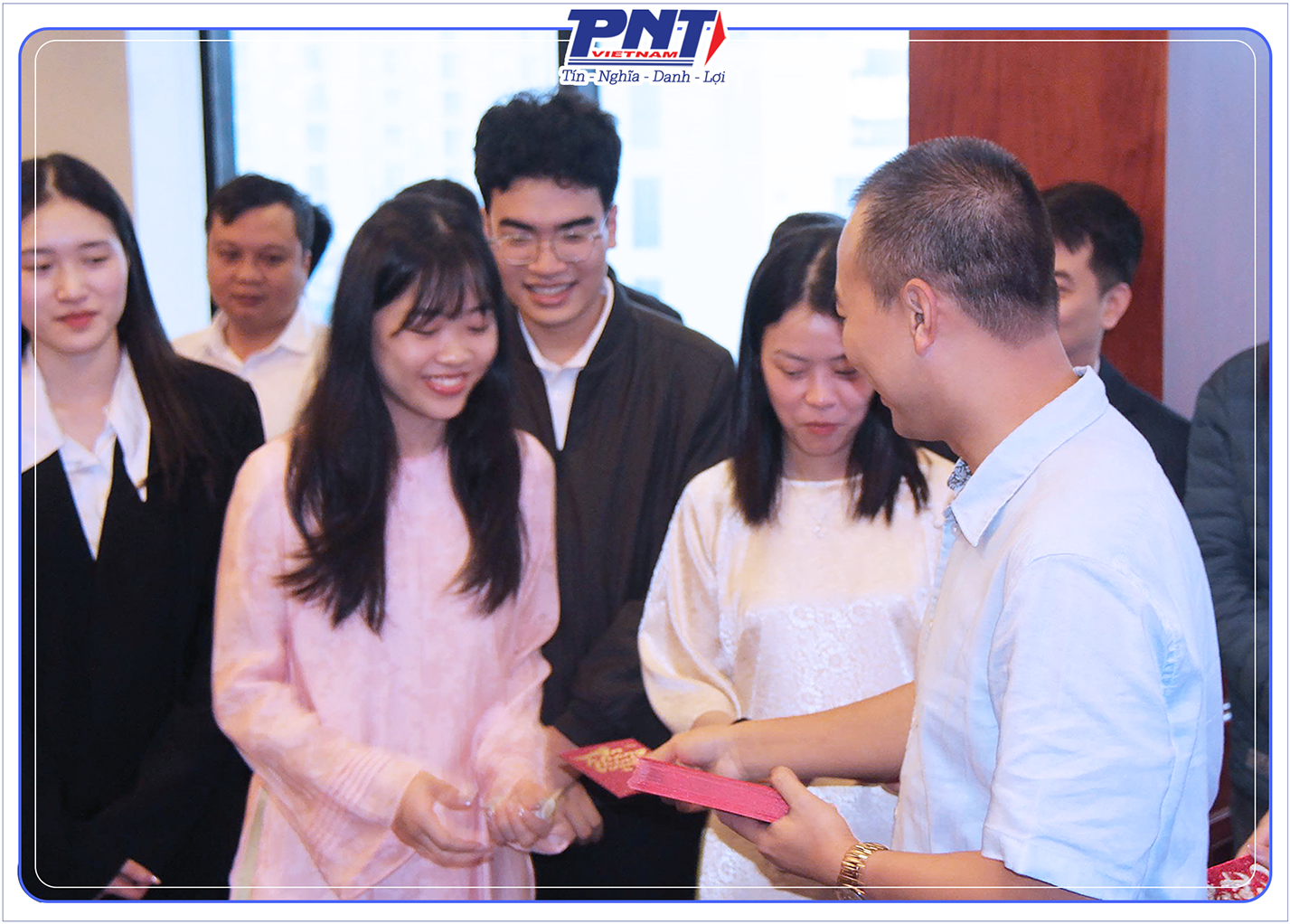 Sau phần phát biểu, chương trình PNT Việt Nam khai xuân 2026 tiếp nối bằng hoạt động lì xì đầu năm. Ban Giám đốc trực tiếp trao phong bao đỏ cho từng thành viên tại văn phòng Hà Nội, gửi kèm lời chúc may mắn và một năm mới nhiều cơ hội phát triển.